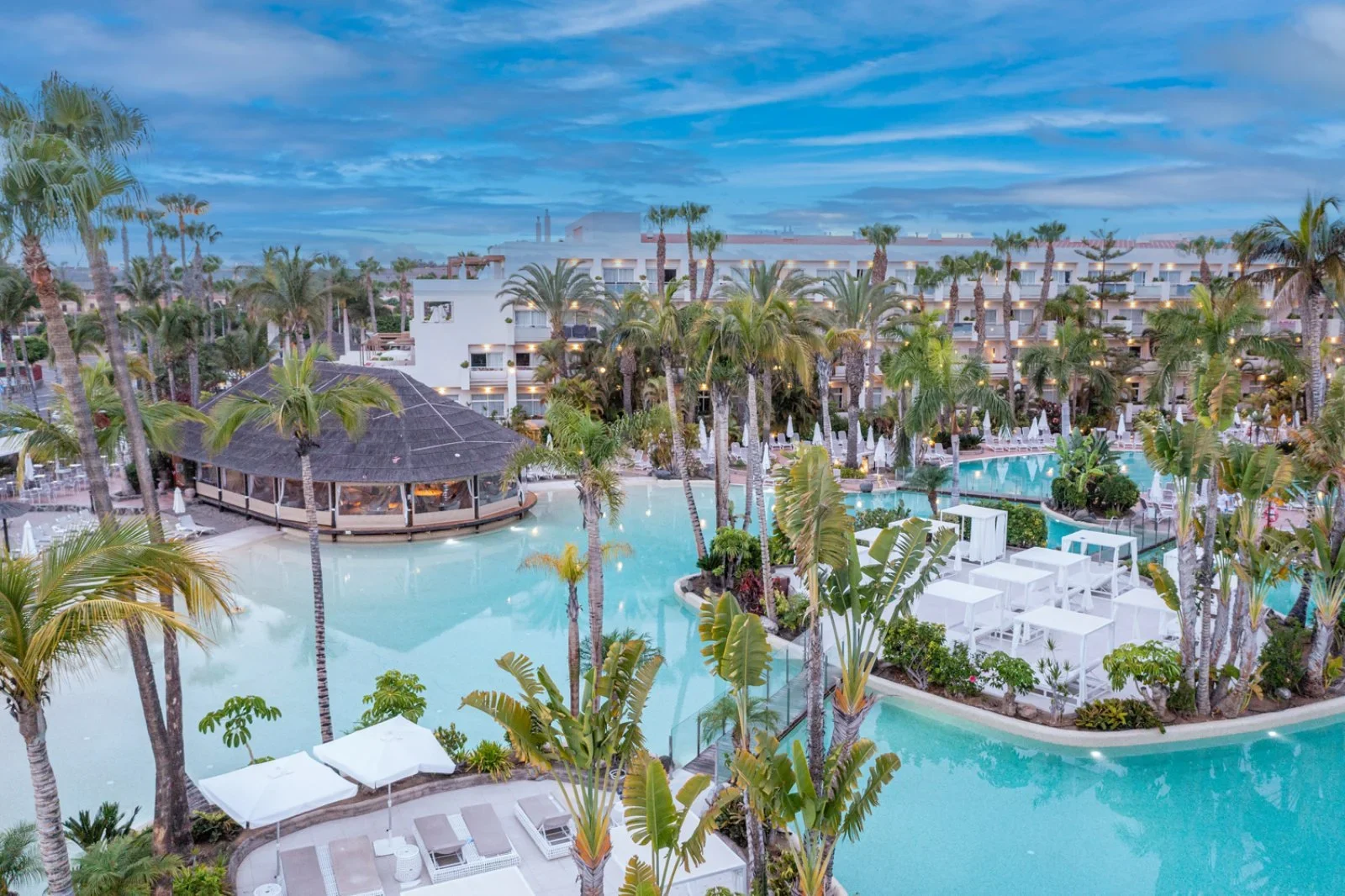 Resort moderno e raffinato, composto in realtà da due hotel, il Tabaiba e il Maspalomas collegati tra loro e immersi in curati giardini. Le piscine circondate da spiaggette artificiali e palme ricreano un vero ambiente tropicale. È situato nel centro di Maspalomas, a 3 km da Playa del Inglés e a 35 dall’aeroporto.