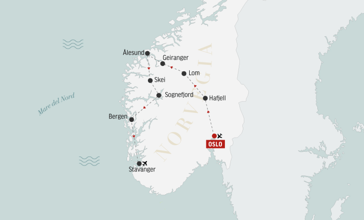 Partiamo per Lom, pittoresca cittadina al centro del Parco Nazionale di Jotunheimen, che ospita la Lom Stavkyrkje, splendida chiesa barocca in legno. Dopo il pranzo libero ci imbarchiamo per una minicrociera sul Geirangerfjord, piccolo ma molto scenografico fiordo dalle pareti a strapiombo e dalle acque verde smeraldo. Raggiungiamo Ålesund per la cena.