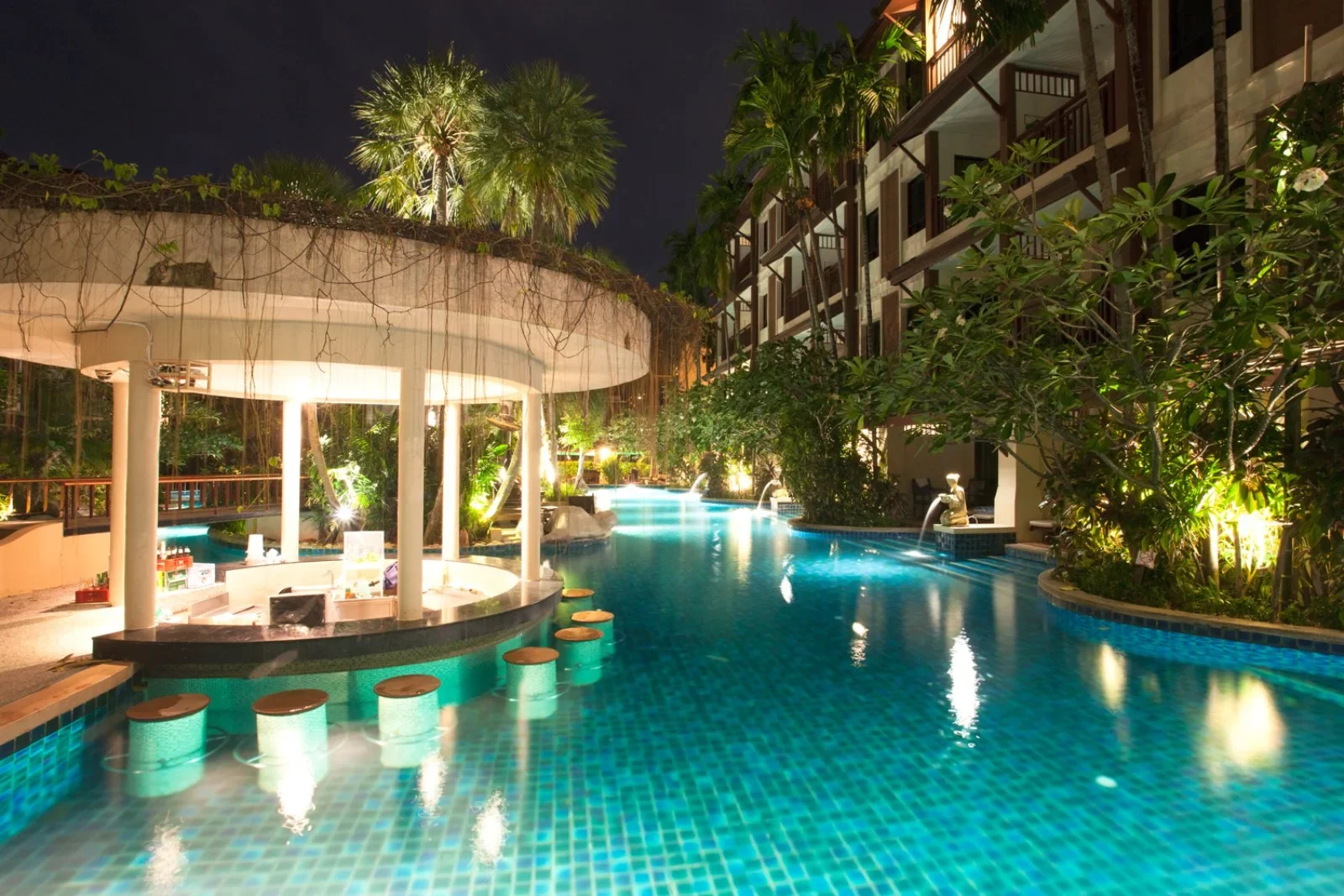 il Kata Palm Hotel vanta una posizione ideale, situato in un’area tranquilla ma centrale, a pochi passi dalla rinomata spiaggia bianca di Kata e dai numerosi ristorantini sul lungomare, raggiungibili a piedi in soli 10 minuti. A soli 20 minuti di auto si trova la vivace Patong, famosa per i suoi mercati locali e l’ampia gamma di opzioni per shopping e divertimento. La struttura, di medie dimensioni, è immersa in una vegetazione tropicale lungo la quale si snodano due grandi piscine da utilizzare per momenti di relax e che la caratterizza nella sua tipicità in puro stile thailandese.